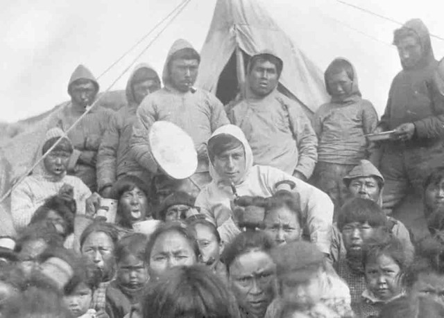 Foto: Knud Rasmussen blandt lokale i Ammassalik i 1919