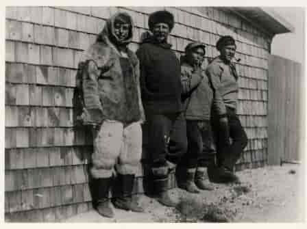Foto: Billede fra den første ekspedition under ledelse af Ludwig Mylius Erichsen som ses til højre for Knud Rasmussen