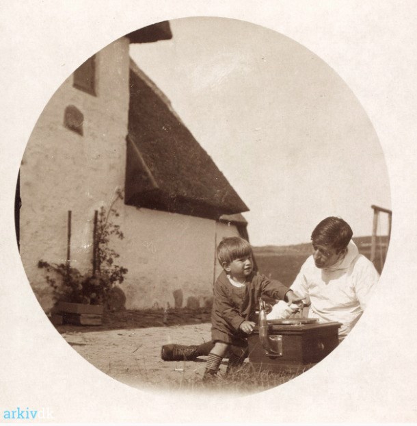 Foto: Arkiv.dk / Knud Rasmussen og søn Niels Christian Rasmussen ved huset i Hundested