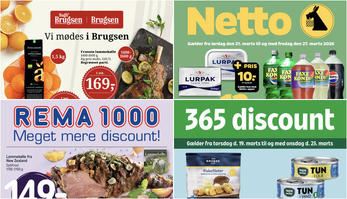 Rema 1000 tilbyder lammekølle fra New Zealand, dybfrost, til en pris på 149 kr. pr. stk. Tilbuddet gælder fra søndag den 22. marts til lørdag den 28. marts.